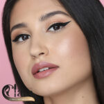 ظاهر نهایی روی صورت: رنگ خط چشم هدی بیوتی Life liner مشکی پررنگ و به شکل مات است.