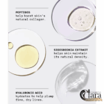 پپتیدها: (پالمیتول تری پپتید-1، استیل هگزاپپتید-8، پالمیتول تتراپپتید-7، پالمیتول هگزاپپتید-12) به افزایش استحکام و انعطاف پذیری پوست کمک می کند؛ پپتیدها زنجیره های کوچکی از اسیدهای آمینه هستند که به تحریک تولید کلاژن در پوست کمک می کنند که می تواند به بهبود خاصیت ارتجاعی پوست و کاهش ظاهر چین و چروک کمک کند.