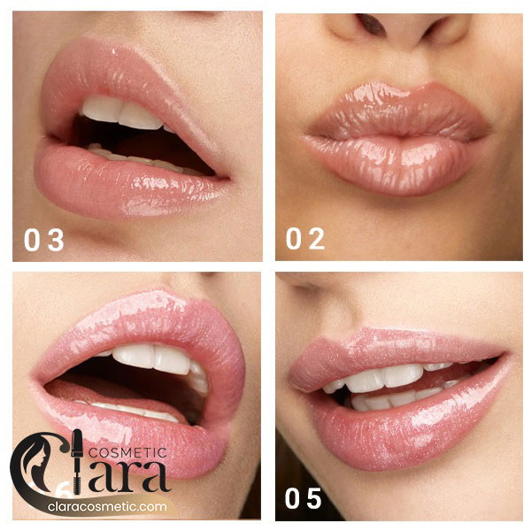 ۷. رنگ شفافش (شماره ۰۱) واقعاً بیرنگه؟ شفاف با ذرات ریز مرواریدی است؛ رنگ اضافه نمیکند ولی براقیت سهبعدی و لوکس فوقالعادهای به لب میدهد.