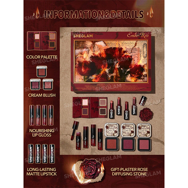 ست آرایشی شیگلم مدل Ember Rose با الهام از زیبایی گل رز طراحی شده و به همین دلیل تندیس گل رز موجود در آن، جلوه ای شاعرانه و خاص به آن داده است. بسته بندی چراغ دار با دکمه خاموش و روشن شدن، نه تنها یک ویژگی تزئینی است، بلکه حس متفاوتی از استفاده لوکس را به کاربر منتقل می کند. این پک، بیشتر از یک مجموعه لوازم آرایش است؛ یک اثر هنری است.