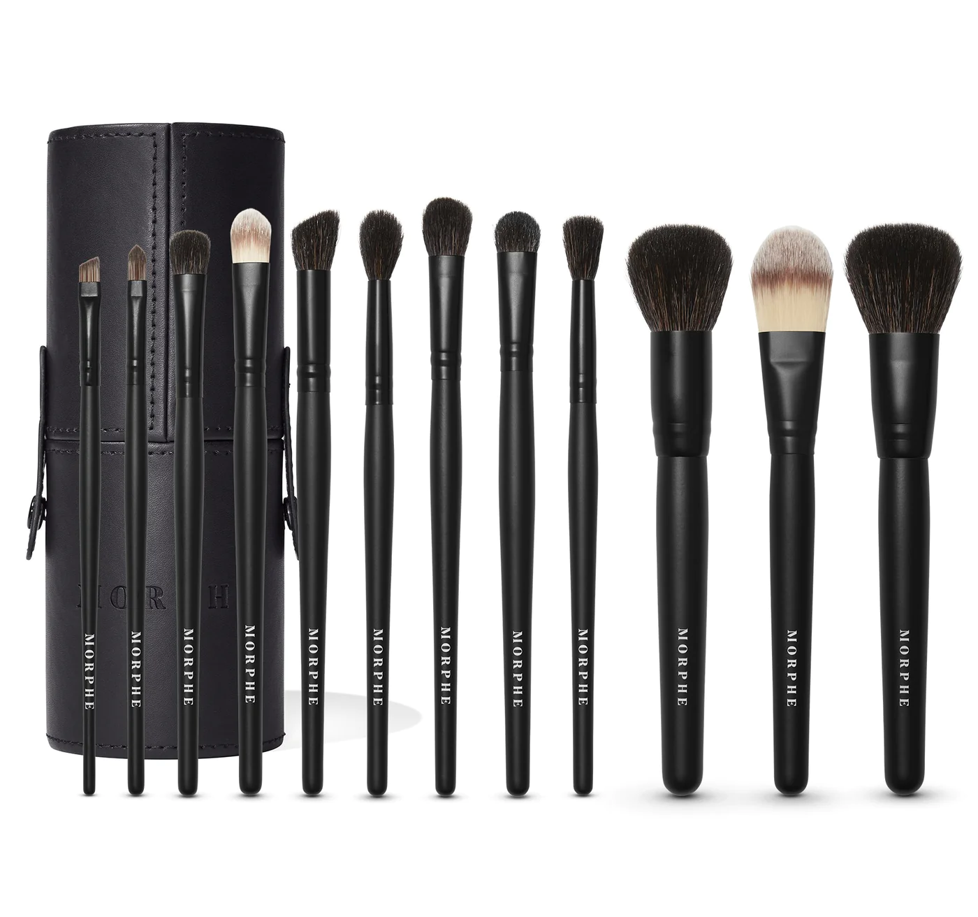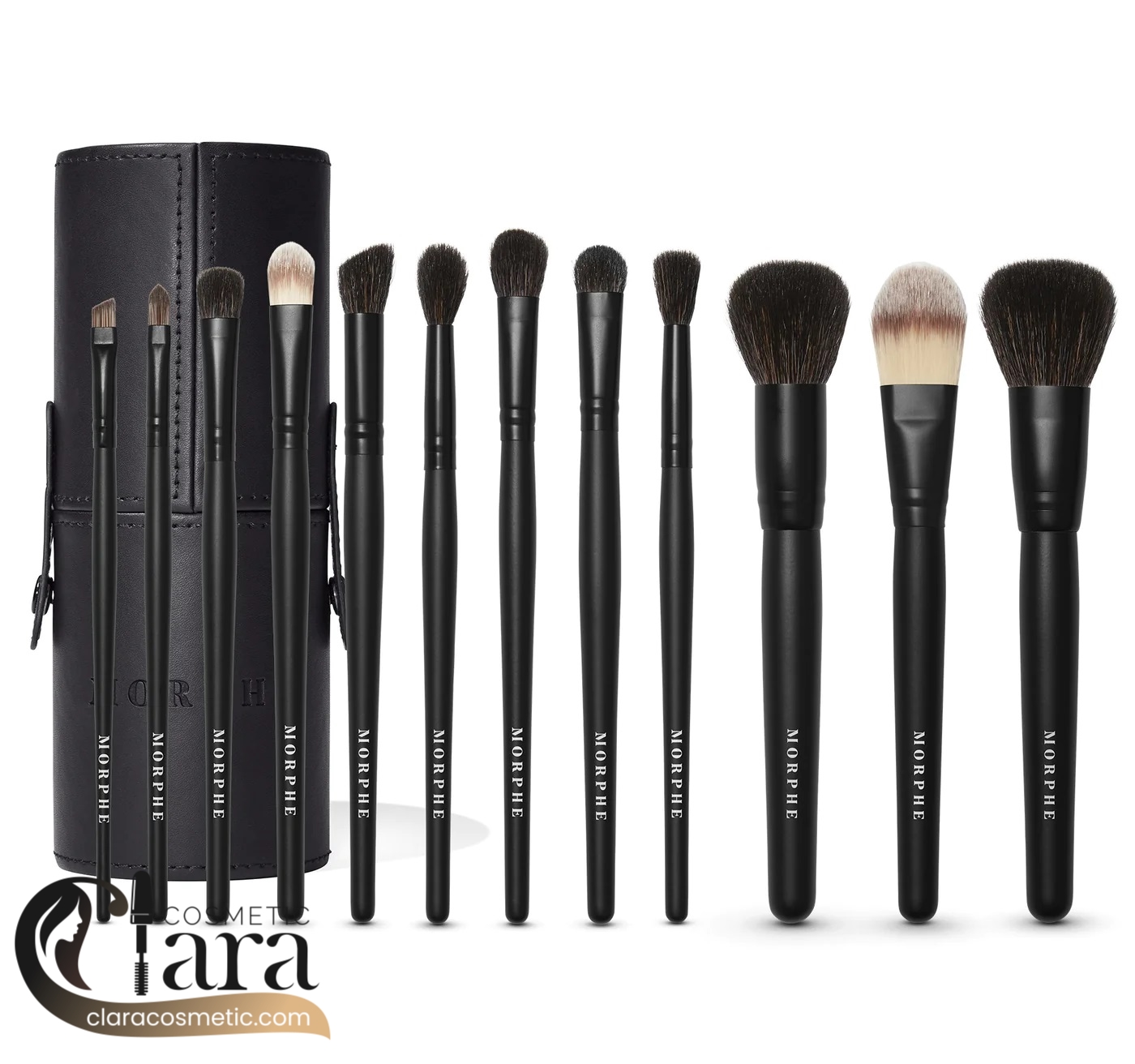 ست براش مورفی مجموعه ای شامل 12 براش اصلی کاربردی و حرفه ای مناسب میکاپ صورت چشم ابرو موهای نرم لطیف و متراکم ترکیبی از موهای طبیعی و مصنوعی در ساخت براش ها انتخاب هوشمندانه تک تک براش های مورفی قرار گرفته در ست جهت یک پایان حرفه ای به همراه کیس نگهدارنده جهت حمل آسان براش ها و همچنین محلی جهت قرار گیری بر روی میز آرایش مقاوم در برابر شستشو و استفاده مجدد براش مورفی سبک خوش دست و حرفه ای در این ست براش برای انواع کرمپودر کانسیلر رژگونه برانزر هایلایتر پودر انواع سایه چشم ابرو و … انوع محصولات کرمی مایع پودری.